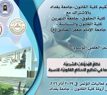 La Faculté de Droit de l’Université de Bagdad lance sa conférence scientifique sur les codes juridiques islamiques et l’organisation des dispositions légales relatives à la famille.LamiaDecember 8, 2025