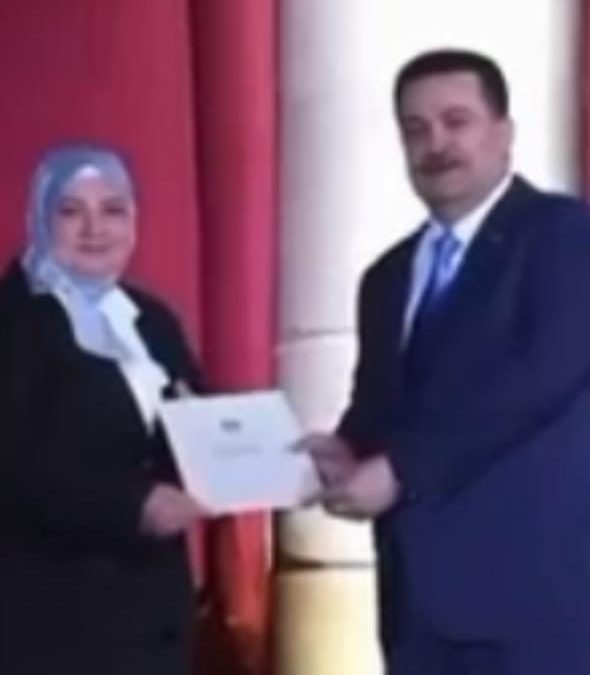 La professeur Dr. Maha Bahjat Younis, professeur de droit constitutionnel à la Faculté de droit de l’Université de Bagdad, a été honorée par Son Excellence le Premier ministre, M. Mohammed Shia Al-Sudani, pour ses efforts scientifiques remarquables dans le domaine du droit constitutionnel et pour ses contributions académiques à l’enrichissement de la culture constitutionnelle, au renforcement des valeurs du système démocratique et institutionnel, ainsi qu’au développement de la pensée constitutionnelle en Irak.