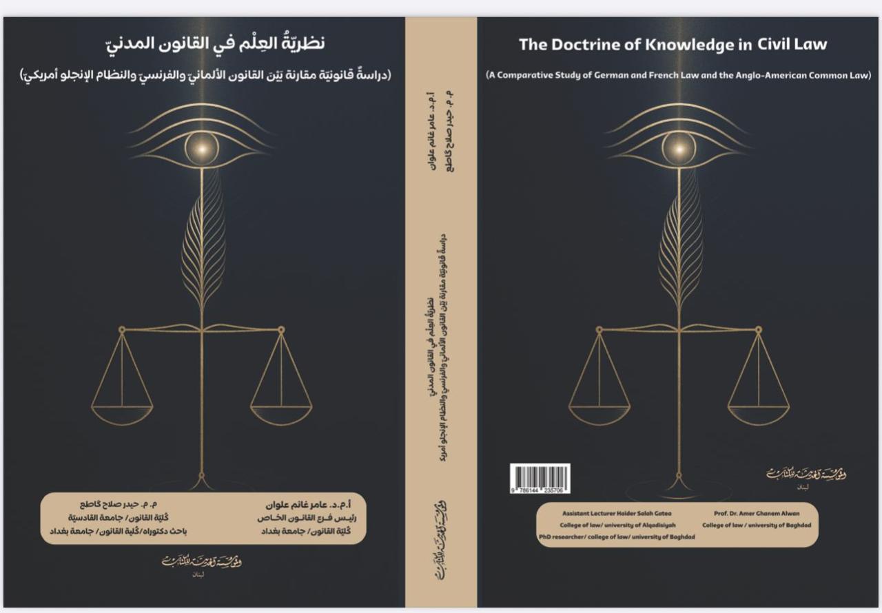 Le professeur associé Dr. Amir Ghanem Alwan, chef du département de droit privé à la Faculté de droit – Université de Bagdad, en collaboration avec M. Haider Sabah Kati‘ de l’Université de Al-Qadisiyah, a publié un nouvel ouvrage scientifique intitulé : “La théorie de la science en droit civil : étude comparative entre le droit allemand, le droit français et le système anglo-américain”.